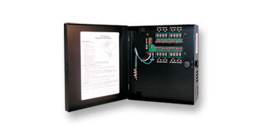 The CCTV power center engineered to manage remote camera and accessory power requirements. The distribution module is designed with 8-16 individually fused outputs for powering up to 8 to 16 CCTV cameras and accessories. It will provide 24Volts AC via distribution to eight fused outputs with a total of 4.0 Amps continuous supply current. The power center is housed in the premium P3 heavy gauge metal enclosure.